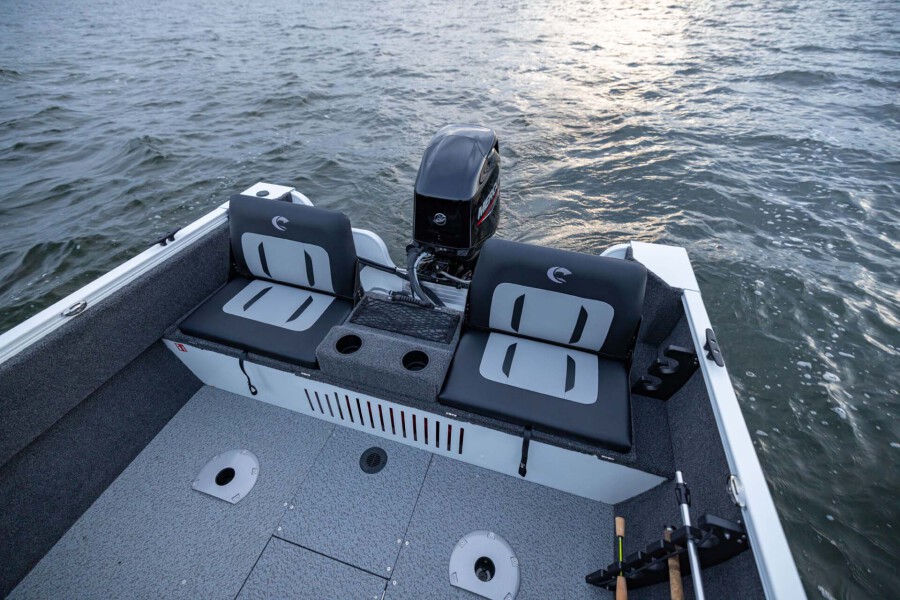 The conversion stern bench option gives you a larger casting/fishing platform when down and additional seating when up.