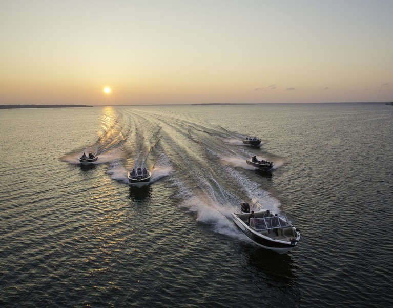 Our aluminum boats are, thanks to almost 70 years of experience in building boats, beautifully lined, lightweight and very durable. We have developed a Four-X hull for the Deep-V boats. This means that the hull is made up of four aluminum panels that are connected by interlocking aluminum profiles and integrated "spray rails". This creates a robust water-repelling hull.